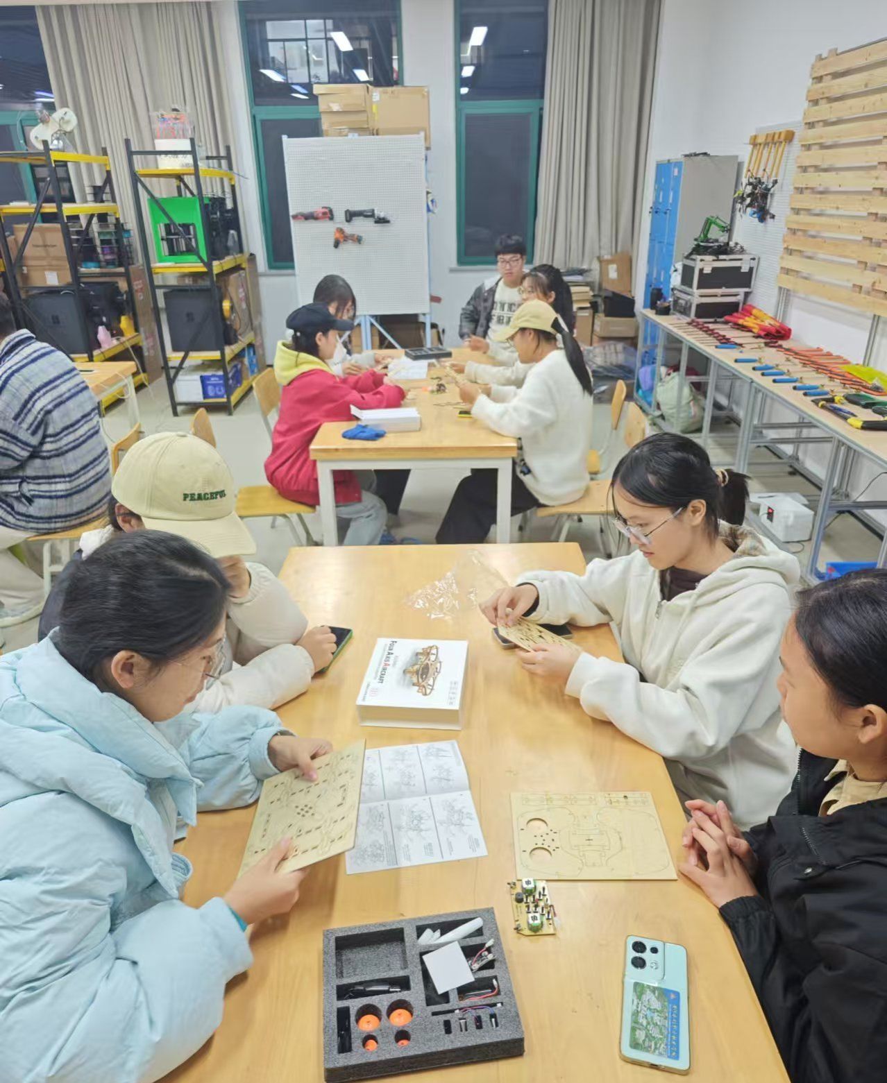 活动伊始,专业指导老师深入浅出地为同学们讲解了穿越机的基本构造、飞行原理以及组装流程,通过生动的 PPT 演示和实物展示,让大家对穿越机有了初步的认识和了解。在老师的耐心指导下,同学们分组开启了穿越机组装之旅。从小心翼翼地拆解零件,到精准地安装电机、电调、飞控板等核心部件,再到仔细地焊接线路、调试参数,每一个环节都考验着同学们的细心与耐心,大家全神贯注,沉浸其中,充分展现出了对科技探索的热情和执着。