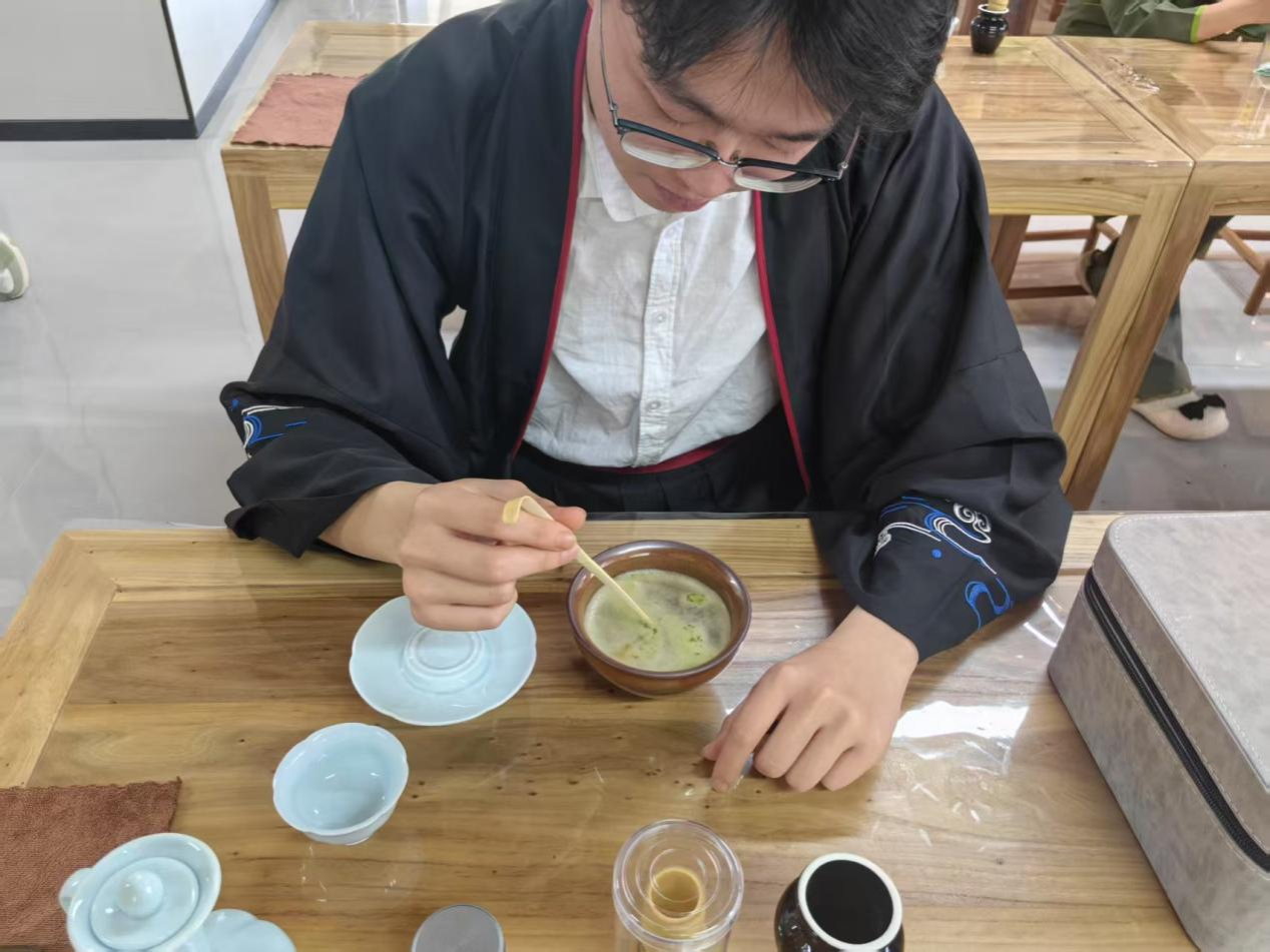 活动伊始,诗礼茶声创客空间指导教师、二级评茶员杨瑄老师为学生们讲解宋代茶文化的历史背景,深入浅出地介绍了宋代茶道的礼仪、茶具的使用方法等,使学生们对宋茶百戏有了初步的认识。接下来,学生们开始了茶艺体验。在茶艺体验区,学生们在指导教师的指导下,学习了宋代点茶法,亲手体验了研茶、点茶、分茶等传统技艺。他们认真地研磨茶叶,细致地调制茶汤,感受着宋代茶文化的独特韵味。