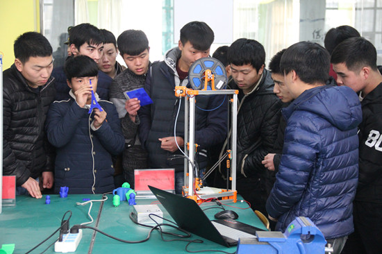 在展会现场,来自机械工程学院的“可移动遥控电视机转向架”、“简易家用高楼起吊装置”、“小型搬运车”、“并联臂3D打印机”,自动化工程系的“宾馆控制系统”、“音乐光立方”、“水疗感应水晶开关”和信息工程系的“虚拟仿真”等项目,精彩呈现了必赢官网大学生科技创新的水平。来自上述三个院系的5个专业指导老师对创新项目的功能、创新点、开发过程及其应用逐一进行详细讲解,参与创新活动的学生对创新项目进行认真演示,参观的校领导和广大师生兴致浓厚,认真观看,感触颇深,赞赏有加。