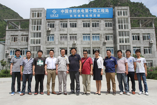 在中国水利水电第十四工程局有限公司长河坝电站项目部与校友合影