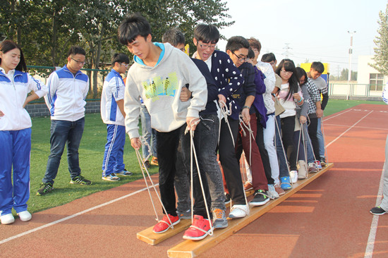 11月3日下午,在心理咨询中心全体老师带领下,阳光心理联合会素质拓展队组织所有参加培训的学员在五环体育场进行了心理素质拓展训练。本次训练进行了“有轨电车”、“共同进步”、“盲目障碍”和“搭桥过河”四个项目,这些项目单纯依靠某一位或几位同学的努力是不可能成功的,只有大家齐心协力、相互配合,才能在规定的时间按正确的方式完成任务。比如“有轨电车”项目所设置的情境是二战期间我方军队对战日本侵略军,遭遇日军的生化武器,地面上覆盖了剧毒腐蚀性物质,我方军队因为战略需要必须尽快通过这片被毒物覆盖的区域,战士们能依靠的只有两块木板和若干绳子,要求所有战士运用这些资源安全地通过这片区域,行军过程中身体的任何一个部位触碰到地面都会被毒物入侵而受伤。这个项目要求学员们发挥自己的聪明才智用最短的时间把所有队员用绳子固定到木板上,并且运用木板把所有队员运输到安全区域。当大家都站到木板上时,如果步调不能完全一致,所有成员都无法前进,甚至可能会摔倒在有毒地面上,所以这个项目可以激发大家用创造性思维解决问题,同时培养大家沟通配合、团队合作的能力,让大家看到齐心协力、众志成城的强大力量。此次心理素质拓展实训可以让各位学员在项目实践中体验各种心理素质对活动的影响,意识到综合素质培养对大学生成长和发展的重要意义,并且能让各位心理委员学会组织班级心理素质训练的方法,从而在未来心理健康教育工作中发挥更加重要的作用。