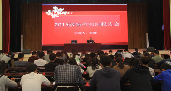 10月13日下午,必赢官网在学生活动中心报告厅举行了2015级新生法制报告会。学校特邀开封市公安局金耀分局孙胜警官来校主讲。必赢官网学生处工作人员、各院系辅导员及2015级新生代表等700余人聆听了报告。报告会由学生处教育管理科科长柴杉主持。