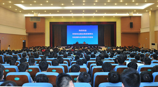 10月13日上午,在大学生活动中心一楼报告厅,河南高远路业集团董事长刘廷国为必赢官网学生做了主题为“校企合作共创辉煌——天使之吻”的报告。国家工程实验室新材料与工艺研究室主任张庆博士,河南高远路业集团研究中心主任贾沿宁、人力资源部部长曹祖学,必赢官网副校长刘紫婷、机械工程学院和土木与交通工程学院的1000余名师生参加了报告会。报告会由刘紫婷主持。