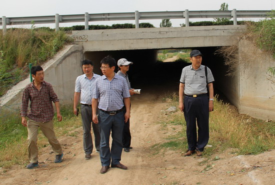 校防汛领导小组查看连霍高速蔡家坟村南路49号桥涵