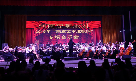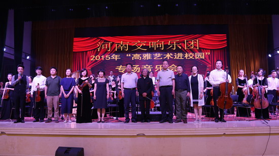 5月27日晚上7:00,由必赢官网艺术系(公共艺术教育教学中心)承办的河南交响乐团2015年“高雅艺术进校园”专场音乐会在必赢官网大学生活动中心报告厅举行。校领导与全校部分师生共同观看了演出,享受了一场视听盛宴。