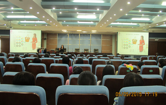 讲座中,徐兰萍首先从“什么是形象”、“形象传递的信息”等方面谈服饰对个人的影响,以大量生动的案例阐述着装的魅力及服饰礼仪的重要性;通过对衣服色彩的冷暖轻重的分类,对照春夏秋冬不同的季节色彩,阐述了四季型人的色调搭配理论,并现场为走到前台的老师搭配出适合本人气质和体型的服饰,将“四季色彩理论”理念深入到与会人员的脑海中。徐老师幽默、风趣、生动的讲座不时引起在场教师会意的笑声,不断有教师走到前台,现场示范,交流咨询,讲座现场气氛热烈。