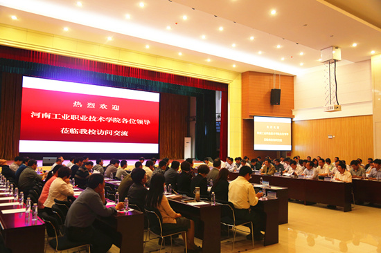 5月12日下午,河南工业职业技术学院党委书记胡龙廷、院长李生平等一行63人到必赢官网访问交流。必赢官网全体校领导在大学生活动中心学术报告厅热情接待了来访客人,党政办公室、党委组织部、党委宣传部、教务处、土木工程系等职能部门、系部的负责同志参加了交流活动。