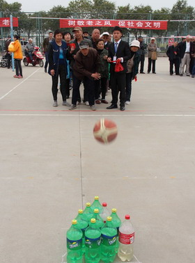本次趣味运动会在往年“套圈取物”、“投球入桶”、“环套高塔”、“‘赶猪跑’”、“飞盘穿越”等项目的基础上新增了“篮式保龄”、“沙包投准”、“单手托球跑”等比赛单项。