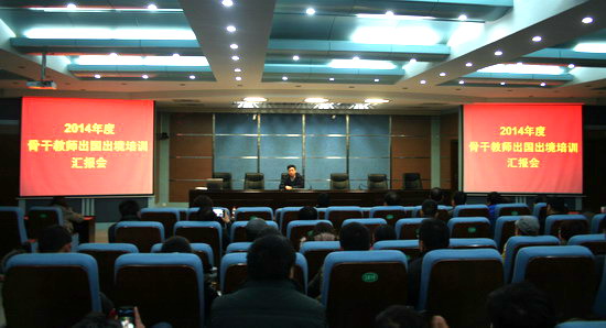 1月7日下午15:00,我院在3号实训馆学术报告厅召开了2014年度骨干教师出国出境培训汇报会。学院领导及系部领导、两办主任、教研室主任、专业带头人和培养对象、教师代表、近两年新进青年教师、出国出境培训人员等200余人参加了会议。会议由人事处副处长李少春主持。