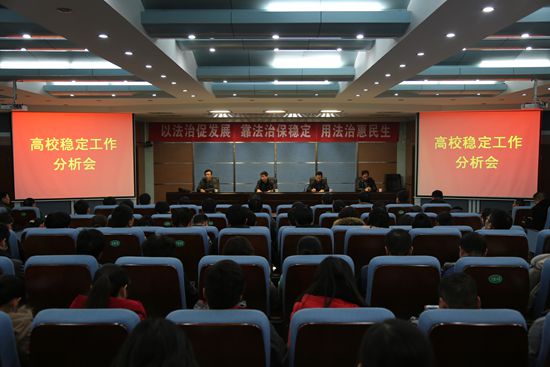会上,我院特邀的开封市公安局相关部门三位警官,针对高校稳定形势,用一个个具体的事例,以案释法,以法论事,为师生们做了一场生动精彩的报告,对今后我院如何引导学生学法守法,如何教育学生维护自身安全,如何做好校园安全稳定工作等起到了积极作用。