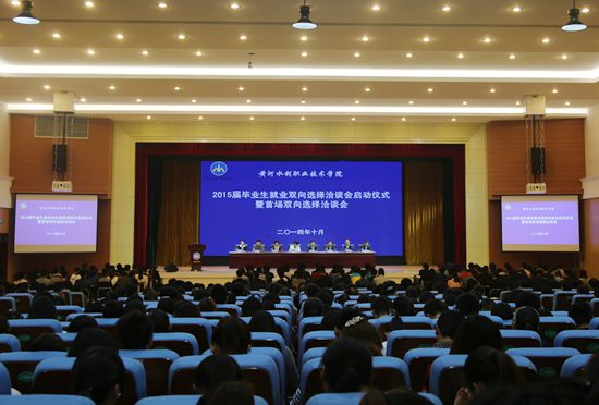为了更好地拓宽毕业生就业渠道,搭建毕业生与用人单位的交流平台,切实做好我院毕业生就业工作,10月24日上午,我院2015届毕业生双向选择洽谈会启动仪式暨首场双向选择洽谈会隆重举行,标志着我院2015届毕业生就业双选活动正式拉开序幕。我院领导刘国际、王卫东、刘紫婷、杨士恒及黄河勘测规划设计有限公司测绘信息工程院副院长周国庆、我院招生就业服务中心主任李纪宾等在主席台就坐。启动仪式由院党政办主任刘玉宾主持。