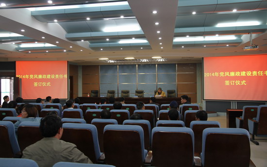 4月30日上午,我院在学术报告厅举行了2014年党风廉政建设责任书签订仪式。全体院领导和中层干部参加了签字仪式。党委书记张惠贞书记作重要讲话。院纪委副书记陈志强主持了签订仪式。