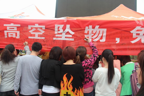 4月21日,院学生会在青年大道举行了“拒绝高空抛物,免费领取垃圾袋”主题活动。学生会讲解员们通过具体事例讲解,将“高空抛物现象”可能造成的后果和影响对现场的同学们进行宣传教育,使大家充分认识到了这一不文明行为的危害性。同学们在条幅上签名,领取了倡议书和垃圾袋,并纷纷表示要严格要求自己,讲文明树新风,培养自己良好的文明素养。维护文明校园,师生人人有责。整洁文明的校园环境是全院师生的共同期望。院学生会通过本次活动,号召同学们杜绝不文明的行为和心态,共建和谐美丽的校园。(撰稿:院学生会)