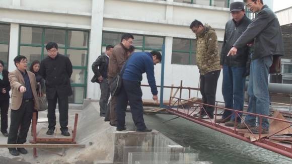 专家组在试验现场对模型制作、数据采集、流态观察等方面进行了认真细致的讨论交流。水力学教研室主任王勤香教授代表模型试验项目团队汇报了模型试验成果,提出了结论和优化设计建议。验收专家组对模型试验给予了高度评价,对项目团队认真负责的态度表示赞赏,对通过模型试验发现并解决了一系列技术难题表示感谢,一致认为,试验方案科学合理、试验过程完整有效、试验手段和测试技术先进、试验结果及优化建议可行,并表示今后将与学院进一步合作。