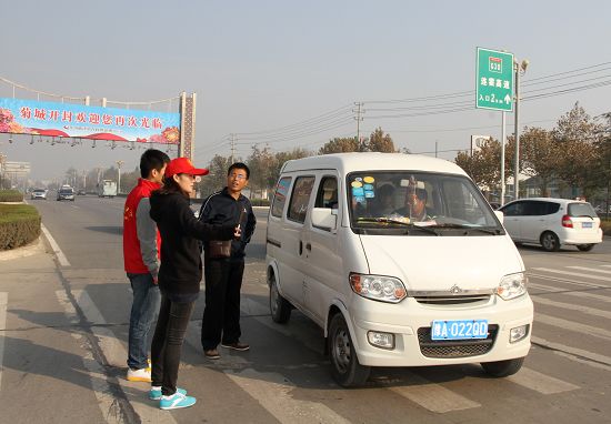 天马广场是途径连霍高速公路进入开封的重要入口,车流量大、外地游客多。每天志愿参加“文明引导”服务活动的师生分为上午、下午两组,每组有4名志愿者,对外地来的游客提供旅游咨询、旅游温馨提示、旅游路线指引和便民互助等服务。为方便游客,志愿者们还手绘出平面旅游路线图,大大提高了服务效率,得到了游客的一致好评。