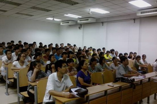 曹建春老师以《路由今日勤奋,交换明天辉煌》为题,为网络专业127名2013级新生做了的一场精彩报告,报告围绕什么是网络、什么是物联网、社会对网络人才的需求、将来我们能干什么及专业培养的目标、任务和新生的任务等七个方面进行了生动翔实的讲解,赢得了学生的阵阵掌声。吴丰老师以《我的大学生活》为题,介绍了军训第一课、学习生活、社团活动、图书馆、职业规划、我要工作了等大学生活诸要素,全方位、多视角为新生介绍了大学生活,帮助新生尽快熟悉、适应大学生活和学习方法,赢得了学生的阵阵喝彩。最后,六名专业导师分片与自己负责指导的学生进行认识、交流与讨论。活动已开展两个小时,师生们依然兴奋的交谈着,意犹未尽。