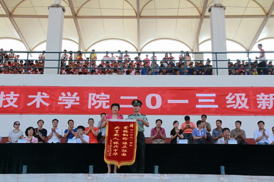军训分列式结束后,学生处处长朱焕立宣布了军训总评获奖的6个方队(系部)、十佳教官、223名优秀军训学员、60名优秀辅导员助理等名单。院领导和部队首长向获奖单位和个人颁发了奖牌和证书。