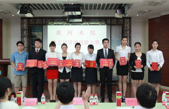 6月15日下午,由旅游系、教务处、学生处和院团委联合举办的黄河水院第五届导游技能大赛在四号实训楼演播大厅举行,本次大赛特邀院学生处处长朱焕立、院团委书记谷献晖、教务处副处长赵兴安、开封市旅行社协会秘书长夏珊珊、开封市华夏旅行社总经理万志刚、开封市豫之旅旅行社经理宋凯涛等11位校内外专家担任评委。经过激烈角逐,晋级决赛的十五名选手的名次最终排定,安雅娟、侯彪、王宇等同学获得“十佳导游”荣誉称号,李若楠、李婷婷等五名选手获得“优秀导游”荣誉称号。