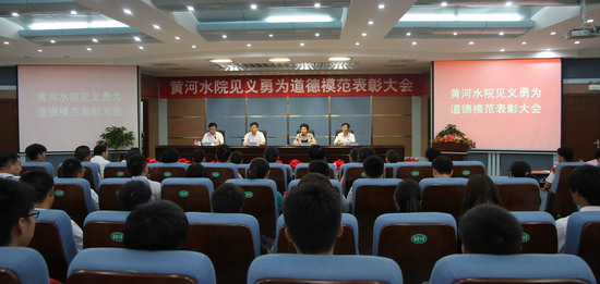 会上,党委副书记、副院长王卫东宣读《黄河水院关于对邢二朋同学见义勇为先进事迹的表彰决定》。决定指出,邢二朋同学在他人生命危急关头,挺身而出、奋不顾身、舍己救人的行为践行了社会主义核心价值观,彰显了中华民族的传统美德,体现了当代大学生的高尚品质,是我院广大师生学习的榜样。为弘扬道德精神,展示道德力量,传递正能量,学院授予邢二朋同学“见义勇为道德模范”荣誉称号,并颁发“见义勇为”奖金10000元。决定向全院师生发出了向邢二朋同学学习的号召。