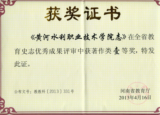 日前,河南省教育厅下发《河南省教育厅关于表彰全省教育史志优秀成果的通知》(教教科〔2013〕331号),《必赢3003no1线路检测中心志》荣获著作类一等奖。此次评审共评出全省优秀教育史志优秀成果73项,其中著作类62项(一等奖11部作品)、论文类11项。