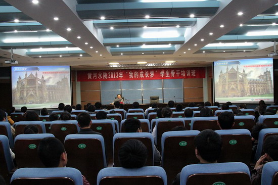,2013年“我的成长梦”学生骨干培训班在3号楼学术报告厅举行,我院国家级教学名师周建郑教授为来自院学生会、社团联合部、广播站及各系学生分会的300名学生骨干做了一场精彩报告。