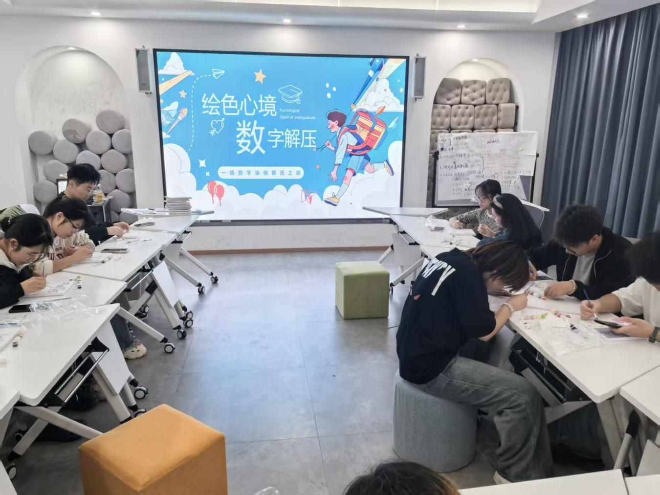 在团体辅导室内,心理教师带领同学们开展“滚雪球”“情绪树洞”等互动游戏。通过深度分享,同学们在轻松的氛围中释放心理压力、学会换位思考,在数字油画体验中,同学们用色彩释放压力,不少同学表示“在游戏中找到了共鸣,感觉和身边人的距离更近了”。
