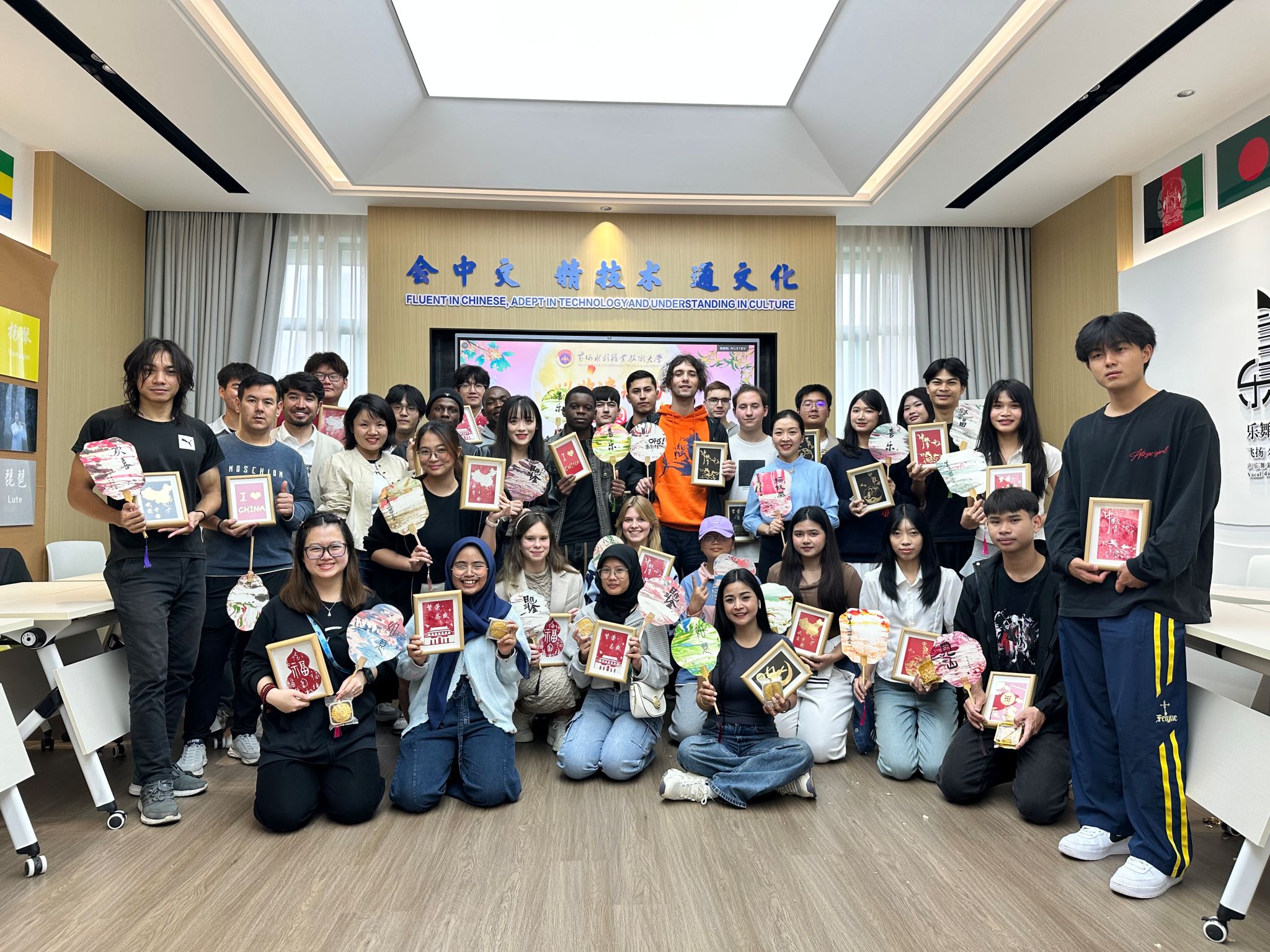 10月5日下午,由国际教育学院主办的中外学生“月满中秋,非遗体验”文化交流活动在教学楼7122圆满举行。来自多个国家的留学生与中国学生齐聚一堂,通过漆扇制作、金箔画创作、木版画拓印及月饼分享等环节,沉浸式体验中华非遗技艺,共庆中秋佳节。
