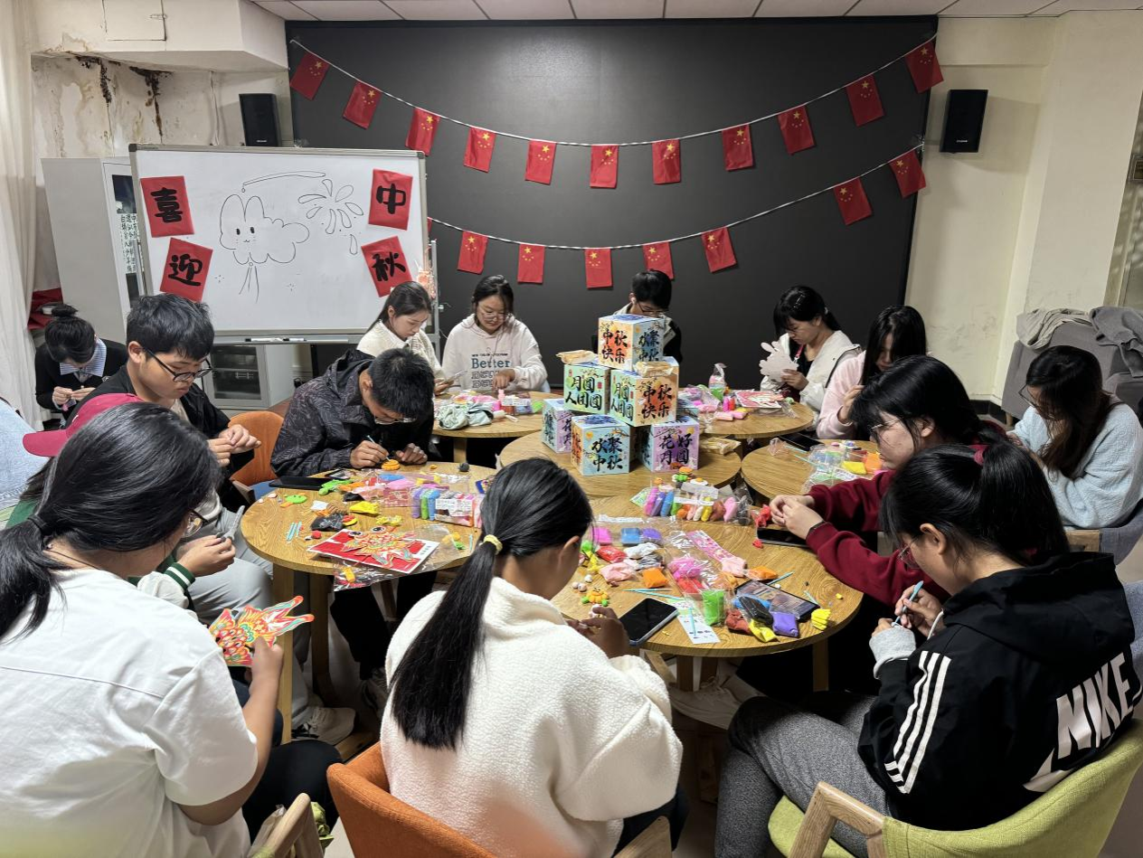 “月满人间·浓情中秋共团圆”主题活动聚焦传统文化传承,营造了温馨和谐的节日氛围。“巧手制灯笼”与“创意黏土DIY”活动吸引了众多学生动手参与,同学们在制作中发挥创意,感受传统工艺的乐趣;“趣味套圈”游戏简单而充满欢乐,现场欢声笑语不断;期间,校团委还为同学们分发了象征团圆的月饼,送上了节日的问候与关怀,让留校学子深切感受到学校的温暖。