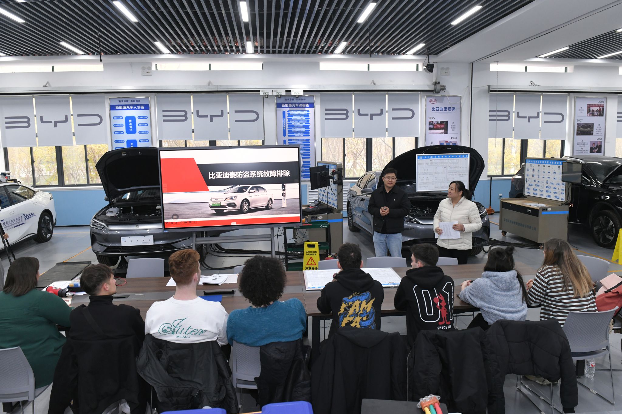 本次研修是学校结合意大利师生需求,发挥专业特色与资源优势,精心打造的集专业讲座、技能实训与文化体验于一体的综合性研修项目。涵盖无人机虚拟仿真、新能源汽车、工业机器人、跨境电商等专题课程与实训,搭配传统文化体验、企业参观等活动。意大利师生通过听课、实训、学习木版年画等传统技艺,在提升专业能力的同时感受中华文明魅力。