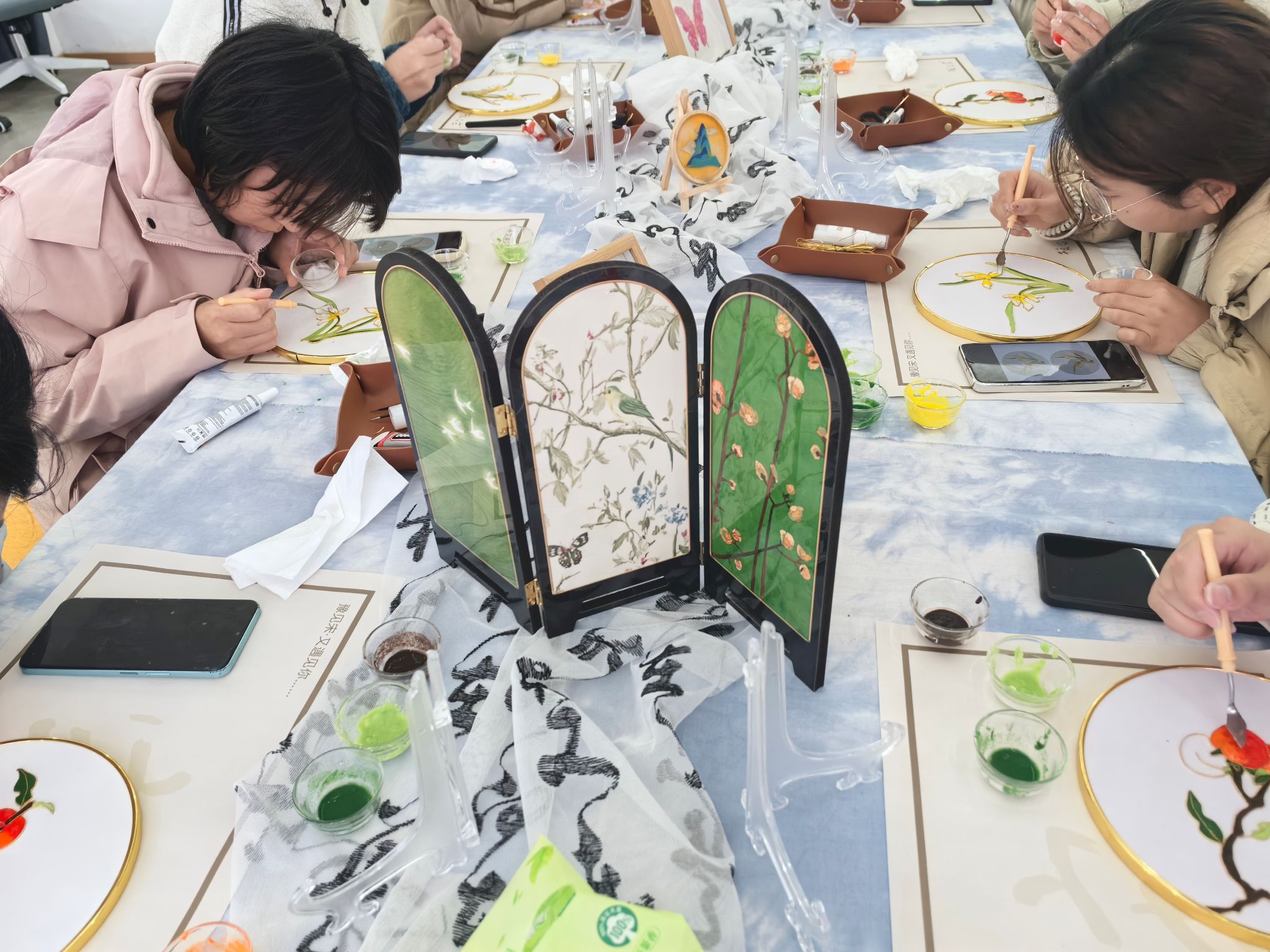 活动中,非遗老师详细讲解掐丝、点蓝、封釉等技艺要点,同学们手持金丝、彩砂,在勾勒轮廓、填充色彩的过程中全神贯注。伴随着舒缓的古典轻音乐,同学们指尖的精细操作让大家暂时脱离学业压力,沉浸于创作的宁静中,不良情绪随专注感逐渐释放。心理辅导老师适时引导同学们分享创作心得,鼓励大家在互帮互助中交流感受,在艺术成果中收获成就感,实现情绪疏导与心灵赋能。