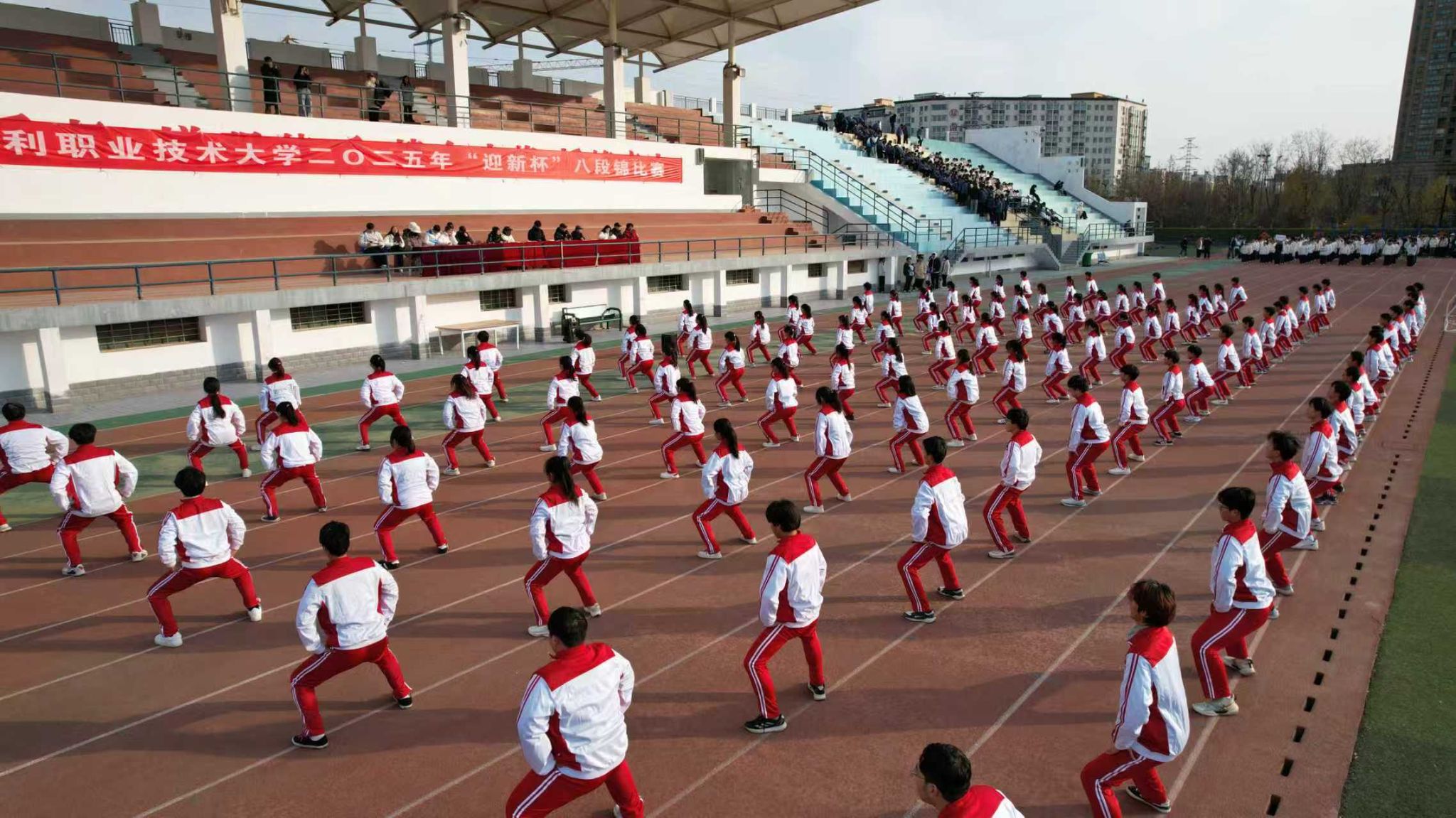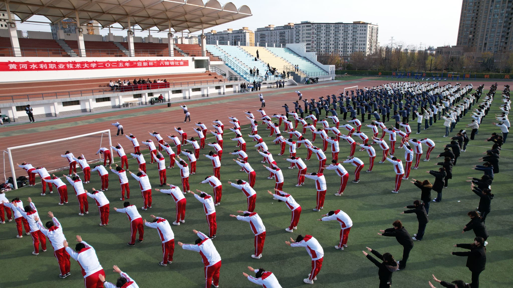 浸润传统文化 锤炼强健体魄。为弘扬中华优秀传统文化,倡导健康生活方式,引导大学生通过民族传统体育项目强身健体,成长成才,12月2日,由学校体育运动委员会主办的“迎新杯”系列比赛之一的健身气功•八段锦千人展演暨竞赛活动在祥云体育场举行。来自全校各学院的12支代表队、共计1000多名学生同台竞技,以刚柔并济的招式展现八段锦的独特魅力。