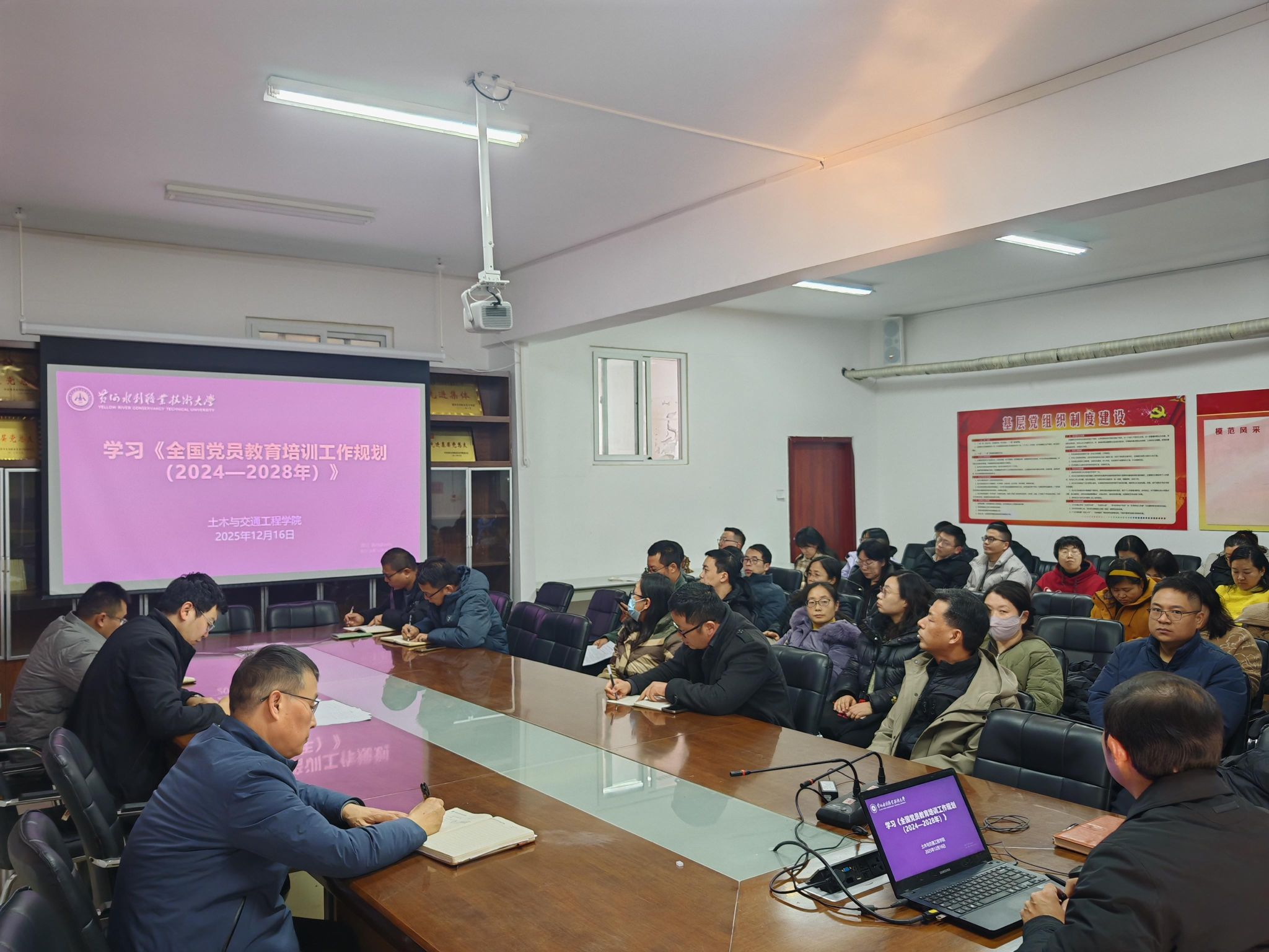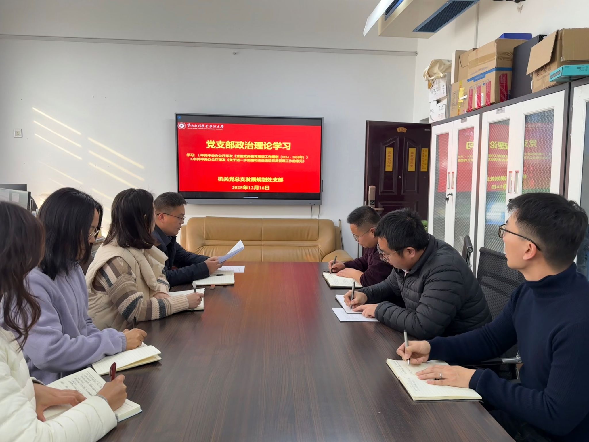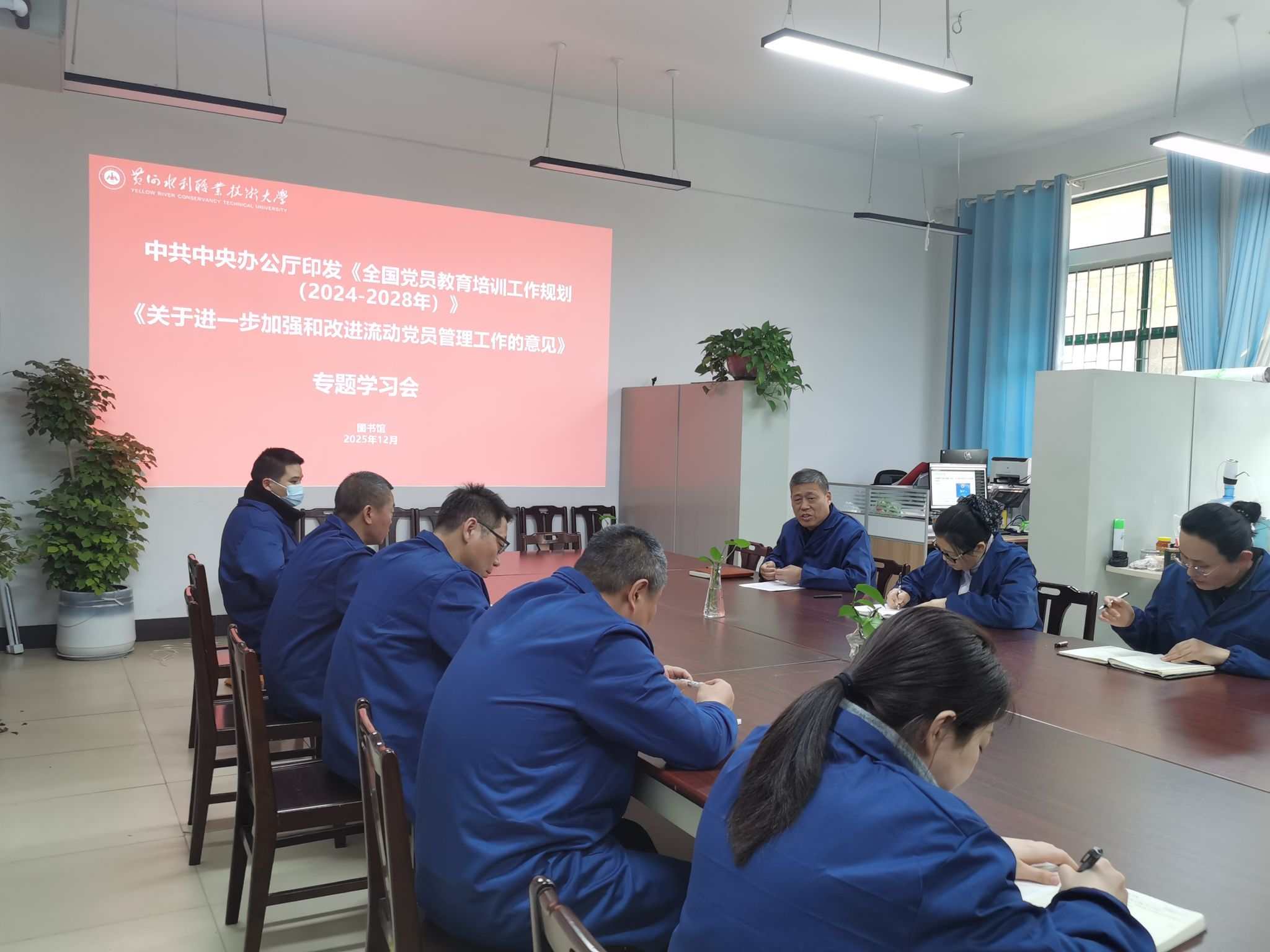 为贯彻落实《黄水2025年下半年政治理论学习及思想道德教育计划》学习要求,12月16日,全校各部门、各单位分别组织教职工传达学习中共中央办公厅印发的《全国党员教育培训工作规划(2024-2028年)》和《关于进一步加强和改进流动党员管理工作的意见》,加强和改进必赢官网党员教育培训工作,锻造过硬党员队伍,不断增强党的创造力、凝聚力、战斗力,提高党的执政能力,引导师生新形势下保持共产党员先进性。(供图:各相关部门)