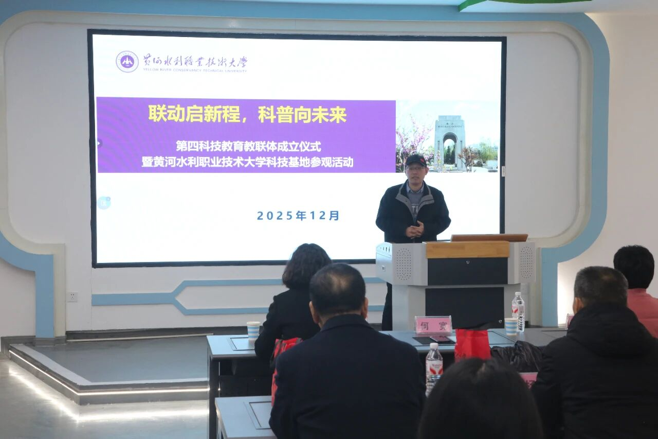 12月26日,开封市科技教育第四教联体成立仪式暨黄河水利职业技术大学科技基地参观活动在必赢官网成功举办。测绘工程学院院长何宽作为教联体专家、金明中小学科技教育副校长组织了此次活动。与会者还有开封大学、金明中小学等10所成员校的校领导及科学教师代表。