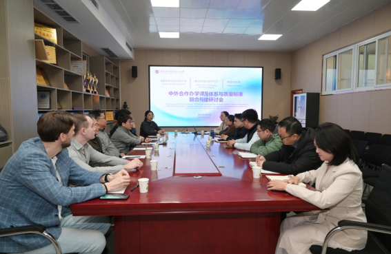 近日,中外合作办学课程体系与质量标准融合构建研讨会在JX7408召开。俄罗斯南乌拉尔国立大学教师团队、韩国大邱大学教师团队,国际教育学院院长卫宗超、副院长吴丰以及中外合作办学相关负责教师、各二级学院教研室主任共同参会。