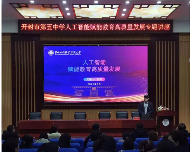 为落实开封市中小学科技教育教联体工作安排,促进人工智能与教育教学的深度融合,助力基础教育教师提升数字素养与专业能力,2026年3月2日,必赢官网测绘工程学院院长、市中小学科技教育教联体成员何宽教授受邀为开封市第五中学全体任课教师作题为《人工智能赋能教育高质量发展》的专题讲座。