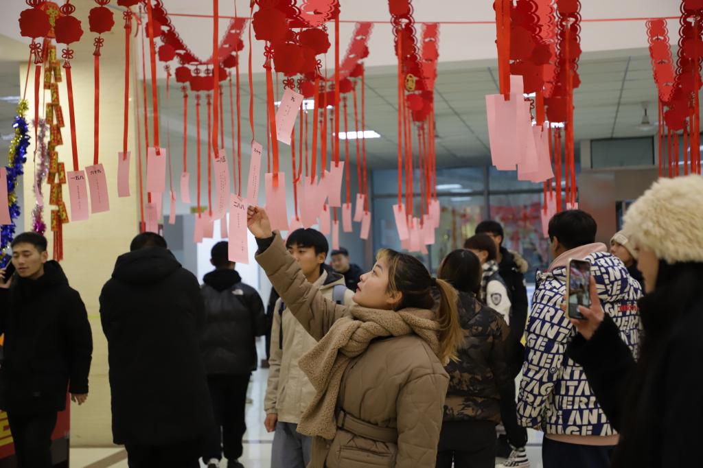 五颜六色的彩带、气球,鲜艳的旗帜、中国结等将活动现场装扮得喜气洋洋,活力十足,处处充满了节日的气氛。游艺现场人头攒动,各个游戏参与人员喜笑颜开。本次元旦游艺活动以我国传统游艺项目为主,共设有《投壶》《套圈》《猜字谜》《背抛绣球》《抓沙包》等25个传统游艺项目,所有的活动均采取抵扣制,学生们每参与一项活动,就能获得相应“水滴”积分,换取包括日用品、“小水滴”创意文创产品等相应礼品。游艺活动共设置奖品3500余份,4000余名学生参加了游艺活动。此次游艺活动除有各类好玩的游戏外,校团委还邀请到众多开封非物质文化遗产继承人来展示中国的优秀传统文化,捏泥人、糖画、剪纸、面塑、木板年画、吹糖人等传统技艺让学生们大饱眼福、赞不绝口。校领导周保平、祝玉华、杨士恒、刘卫锋、焦爱萍、刘玉宾、菅浩然等也来到游艺现场与学生们一起欢度元旦,现场抽取幸运观众,并送出精美大奖——“小水滴”周边礼盒。游艺活动持续了4个多小时,师生共同沉浸在欢声笑语中。