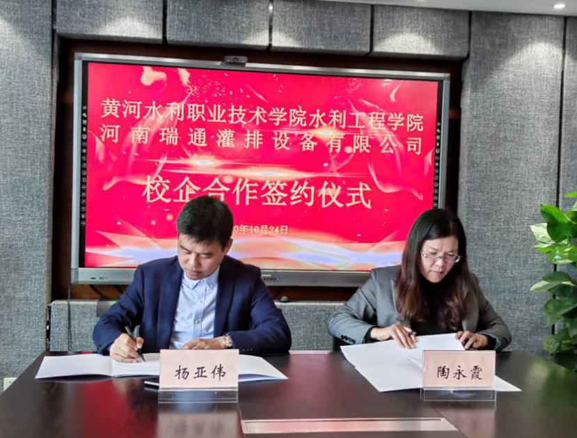 10月24日,我校与河南瑞通灌排设备有限公司校企合作协议签约暨校企合作基地、劳动育人基地揭牌仪式在河南瑞通集团会议室举行。该公司总经理杨亚伟,必赢官网水利工程学院院长陶永霞、校企合作办公室主任陶攀、水利工程专业教师代表参加了仪式。