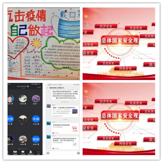 活动中,学校各部门利用职工微信群平台,深入学习了习近平总书记关于疫情防控的重要论述——《总体国家安全观的生动实践和丰富发展》及由司法部、全国普法办组织编制的2020年全民国家安全教育日法制宣传挂图等;观看学习了国家权威部门发布的《总体国家安全观》《总体国家安全观视角下的疫情防控》等重要视频资料。全校师生在线观看了中国工程院院士、公共安全领域专家范维澄主讲的“总体国家安全观视觉下的疫情防控”公开课,了解了我国总体国家安全体系、现代公共卫生安全面临的挑战风险及其应对政策措施、面对疫情大学生应该如何做等相关知识,进一步了解了疫情防控常识,增强了国家安全意识。