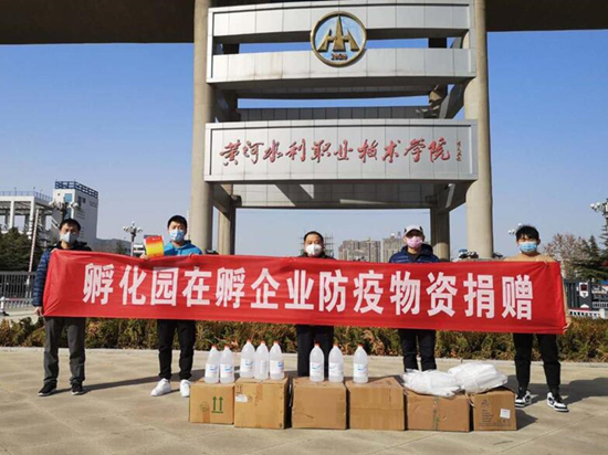2月21日,河南省小宝佳贝供应链管理有限公司、开封市顺创网络科技有限公司、印美集创业团队、河南省创邦未来教育科技有限公司、开封市启宸工程管理有限公司、河南九问工程造价有限公司等6家“黄河之星”创业孵化器在孵企业克服困难,全力筹措防疫物资,向学校捐赠口罩2300个、防护服10套、75%酒精消毒液50桶、免洗手消毒凝胶液60瓶等,为学校打赢防控阻击战提供支持,充分体现了黄河水院创业者的社会责任感。