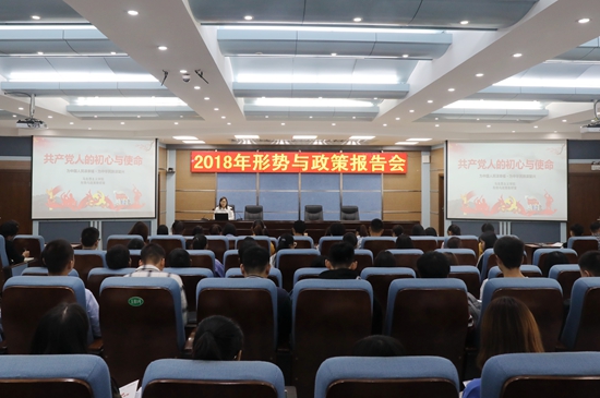 10月11日上午,必赢官网在3号实训馆学术报告厅举行了以“共产党人的初心与使命”为主题的形势与政策专题报告会,近200位师生代表聆听了报告。报告由马克思主义学院形势与政策教研室赵俊亚老师主讲。