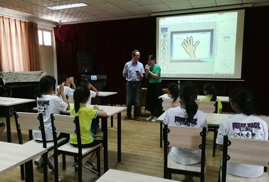 这次暑期小升初英语课程衔接辅导由国教院王慧、张科峰、曹睿三位党员教师轮流授课,时间从2017年7月3日—7月10日,为期8天,每天上午在SOS儿童村内授课。(供图:国际教育学院)