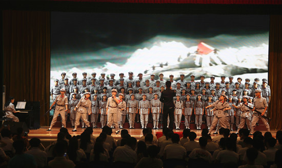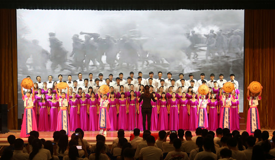 土木与交通工程学院演唱的歌曲《在太行山上》,展现了太行山人民“母亲叫儿打东洋,妻子送郎上战场”的抗日热情和英勇顽强的抗日精神。