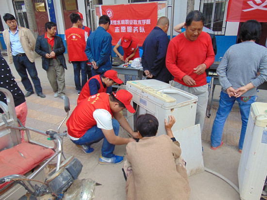 5月7日,自动化工程系家电维修志愿服务队在党委宣传部组织下,来到必赢官网结对帮扶的金明区水稻乡孙庄村(富平社区)开展新农村文明共建活动,为村民义务维修家用电器。