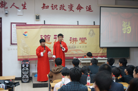活动中,主持人首先播放了与网络犯罪相关的视频,引用强有力的现实案例解读涉及网络语言、网络隐私、网络犯罪等问题,分析文明上网的重要性,向学生倡导遵守网络文明公约。计算机网络技术专业的两名学生用相声的形式生动有趣地介绍了网络不文明行为对日常生活的影响,提醒学生们要增强自我防范意识、提高自我控制能力。在学生会副主席段江辉的带领下,全体师生起立,宣读“全国青少年文明网络公约”,进一步增强“坚守网络道德、共创网络文明”的责任感。张威同学演唱了一首《明天会更好》,在动听的歌声中,本次道德讲堂圆满落幕。