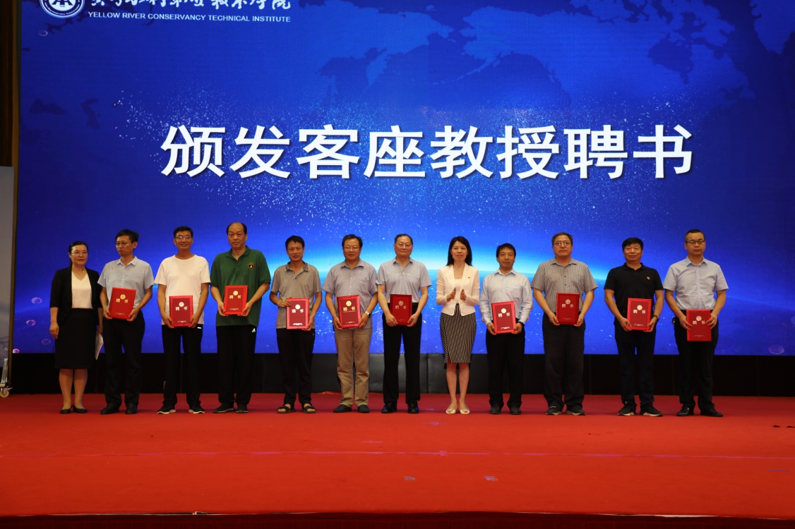 水利工程学院党总支书记孙天星宣读了专业群建指导设委员会委员名单。焦爱萍分别为中国水利水电第十一工程局有限公司总经理助理张卫东、三门峡黄河明珠(集团)有限公司发展部经理罗昌忠、黄河水利科学研究院中原学者姚文艺、河南省前坪水库建管局局长张兆省、黄河水利委员会科技推广中心主任冷元宝、河南省前坪水库建设管理局总工程师皇甫泽华、黄河水文科技有限公司董事长张永平、河南黄河河务局副总工程师耿明全、河南省水利科学研究院副院长袁群、开封市水务开发建设有限公司董事长吴现伟、开封市水利局副局长庞红伟、开封市水利建筑勘察设计院副院长姚伟华等专家颁发了指导委员会委员证书和客座教授聘书。
