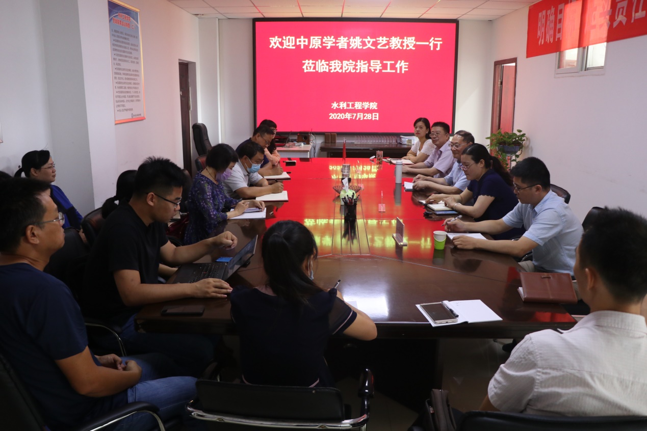 2020年7月28日上午,黄河水利科学研究院原副院长、中原学者姚文艺教授一行莅临我院指导科研工作,与会专家领导在SY5312会议室进行了座谈,参加本次会议的有水利工程学院党总支书记孙天星、院长陶永霞、学院各科研平台负责人及博士等。