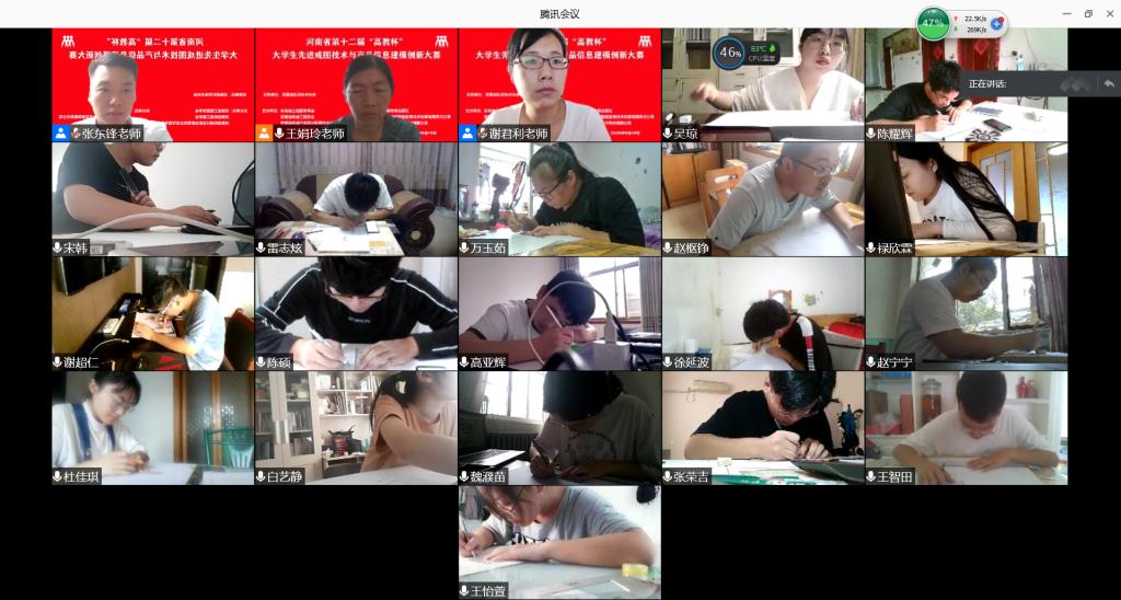 8月22日上午9点大赛正式开始。大赛采用学习通发布竞赛试卷、学生人脸识别后进入系统进行试卷浏览并答题,各考场使用腾讯会议进行全程监考。比赛中,参赛选手认真读图,冷静分析,争分夺秒,熟练敏捷,表现出良好的技能水平和精神风貌。大赛阅卷客观内容由学习通自动评判,主观内容采用腾讯会议的形式进行网上流水评阅,严谨细致,客观公正;阅卷过程中,专家可以随时进入会议进行监控、指导,整个大赛公开、公正、公平。