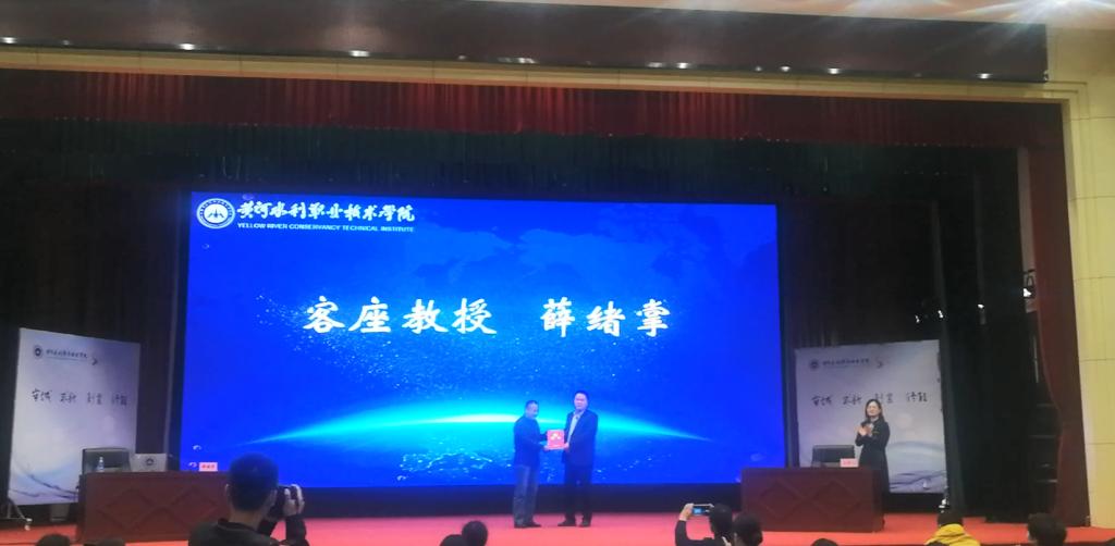 最后,水利工程学院副院长闫国新为薛绪掌研究员颁发了客座教授证书。