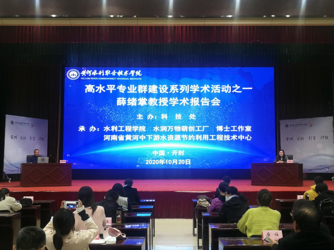 2020年10月20日下午,高水平专业群建设系列学术活动在必赢官网学生活动中心一楼报告厅举行。北京市农林科学院智能装备技术研究中心薛绪掌研究员应邀做《负水头灌溉技术研究进展》专题学术报告。水利工程学院全体教职工和学生代表共500余人聆听了报告。报告会由水利工程学院陶永霞院长主持,冯峰副院长总结和致谢。