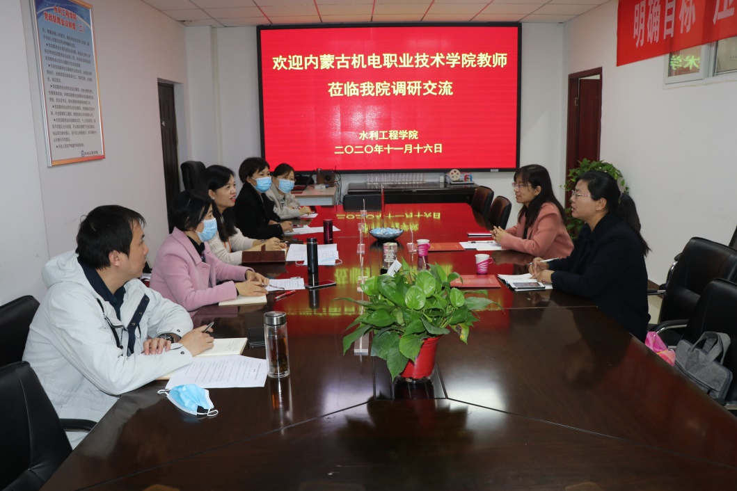 2020年11月16日,内蒙古机电职业技术学院水利系副主任张瑞麟一行2人来我院调研考察。水利工程学院院长陶永霞、副院长冯峰出席了座谈会,水利工程教研室主任王勤香、水工建筑教研室主任李梅华、水电站教研室副主任万晓丹、校企合作办公室主任陶攀等相关骨干教师参会。
